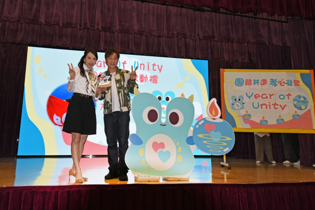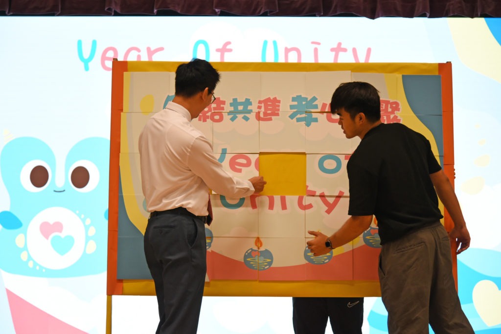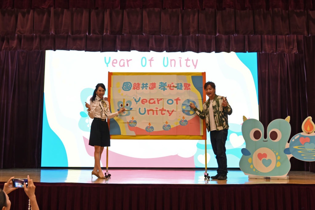 簡介:本年度是Year of Unity團結之年,本校很榮幸邀請了邀請到十大傑出青年、演藝人、游泳運動員方力申先生到校主持團結之年啓動禮。當天方力申先生與陳校長、家教會委員及全校師生一同為代表團結的星球小生物Tutu的魔法蠟燭舉行亮燈儀式,這代表團結之年正式啟動。除了主持亮燈儀式外,方力申先生還分享了他運動員路上的經歷。更令人興奮的是他與陳校長、陳副校長、家教會主席、工友及各班學生代表一同完成團結之年拼圖,喻意團結共進,上下一心,全場充滿熱鬧的氣氛。